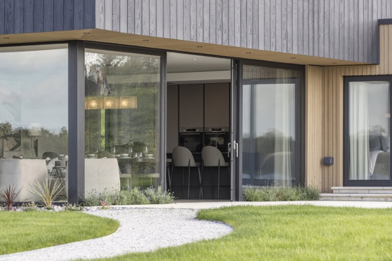 EnvelloBoard & Batten+ in Golden Oakwurdeaufgrundseineswarmen,einladendenFarbtonsausgewählt, der dienatürlicheLandschaftvon FermanaghergänztundeinenahtloseVerbindungzwischendenFerienhäusernundihrerUmgebungschafft.