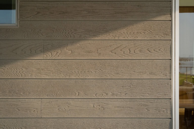 Die Shadow Line+ Verkleidung schützt und akzentuiert die Fassade und verleiht dem Gebäude eine klare, skulpturale Präzision. Die Enhanced Grain Terrassendielen erweitern das Wohnerlebnis nach außen und schaffen eine Oberfläche, die nicht nur visuell überzeugt, sondern auch für eines der anspruchsvollsten Küstenklimata ausgelegt ist.