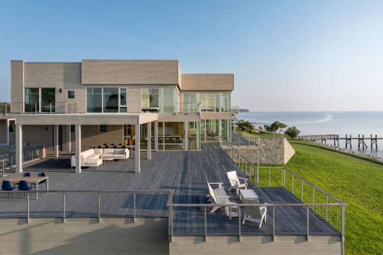 Die Region rund um die Chesapeake Bay erlebt das gesamte Spektrum an Wetterbedingungen. Schwül-feuchte Sommer wechseln sich mit kühlen, salzhaltigen Winden im Winter ab. Die spezielle Zusammensetzung der Millboard Terrassendielen und Fassadenverkleidungen, eine Mischung aus holzfreiem Polymerharz und Mineralstein, bietet hier klare Vorteile gegenüber klassischem Holz oder Standard-Verbundwerkstoffen.
