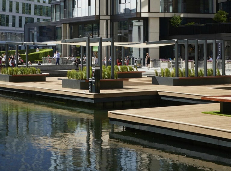 Das Paddington Basin, einst ein eher unbeachteter Abschnitt des Grand Union Canal, wurde zu einem lebendigen urbanen Ziel neu interpretiert, das technische Innovation mit landschaftlicher Gestaltung verbindet. Im Mittelpunkt dieser Entwicklung steht der Floating Pocket Park – Londons erster öffentlicher schwimmender Park –, entworfen von Tony Woods vom Garden Club London, RHS Young Garden Designer of the Year und Goldmedaillengewinner.