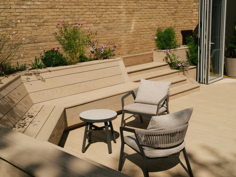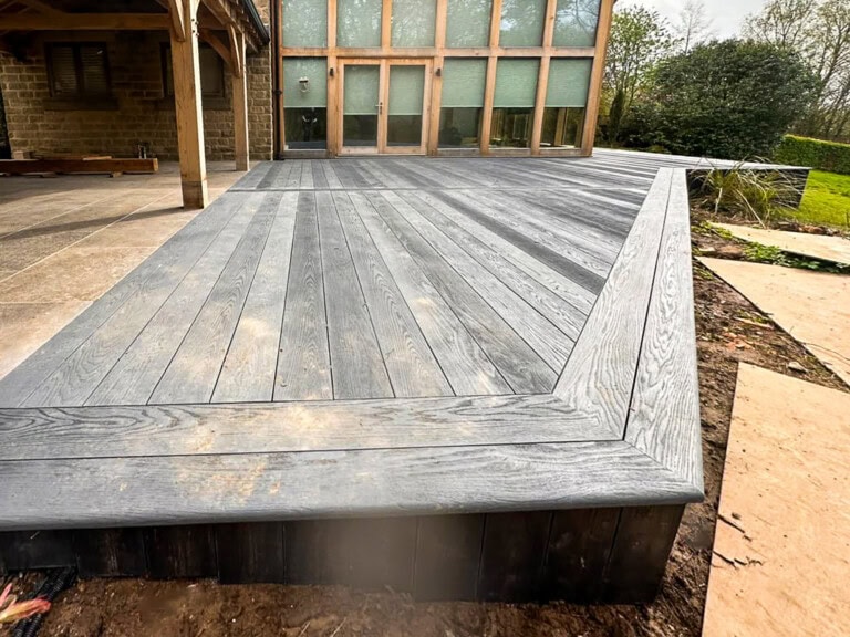 Saubere Abschlussdetails, die Kanten schützen und Terrassenkomponenten verdecken.