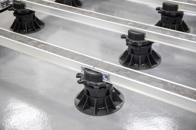 Unebene Untergründe sind kein Hindernis. Die höhenverstellbaren Stelzlager ermöglichen eine präzise Ausrichtung auch bei Gefälle oder Höhenunterschieden.
