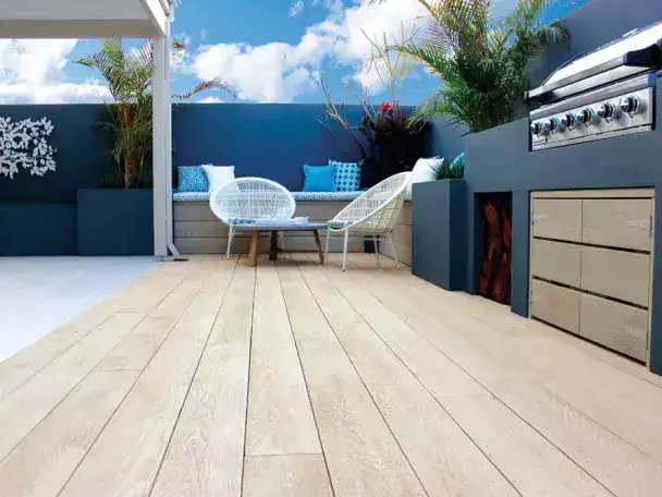 Millboard bietet eine breite Palette an Farbtönen, darunter Antique Oak, Smoked Oak, Golden Oak oder Driftwood. Alle Farben lassen sich gut mit moderner wie klassischer Architektur kombinieren und sorgen für einen fließenden Übergang zwischen Innen und Außen.