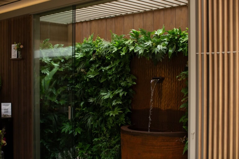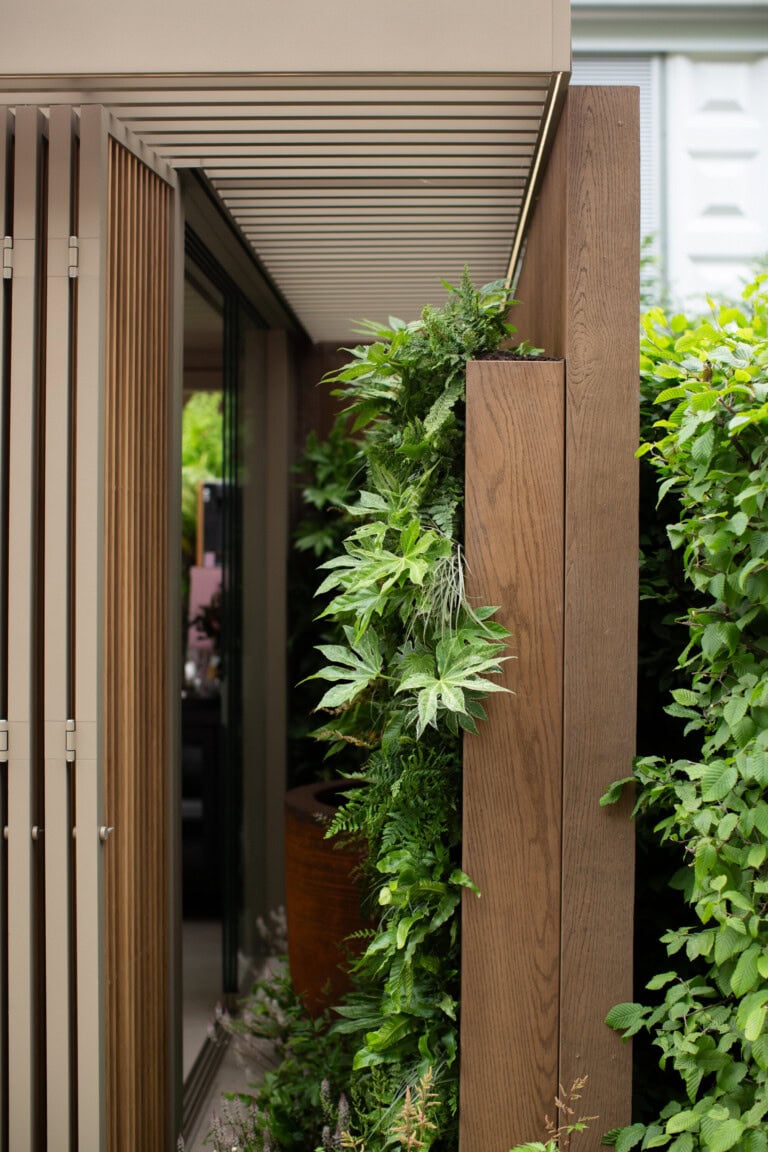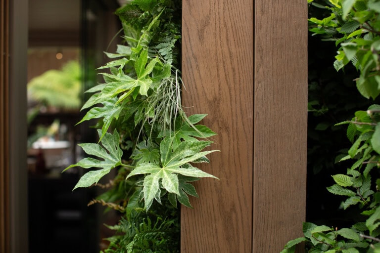 Die Shadow Line+ Verkleidung brachte architektonische Tiefe und klare Linien. Im sogenannten „Secret Garden“ des Standes kamen Modello Contour Terrassendielen zum Einsatz und schufen einen abgeschirmten, ruhigen Rückzugsort. Die satten Farbtöne bildeten einen bewussten Kontrast zur üppigen Bepflanzung und verstärkten das Gefühl von Geborgenheit und Struktur.