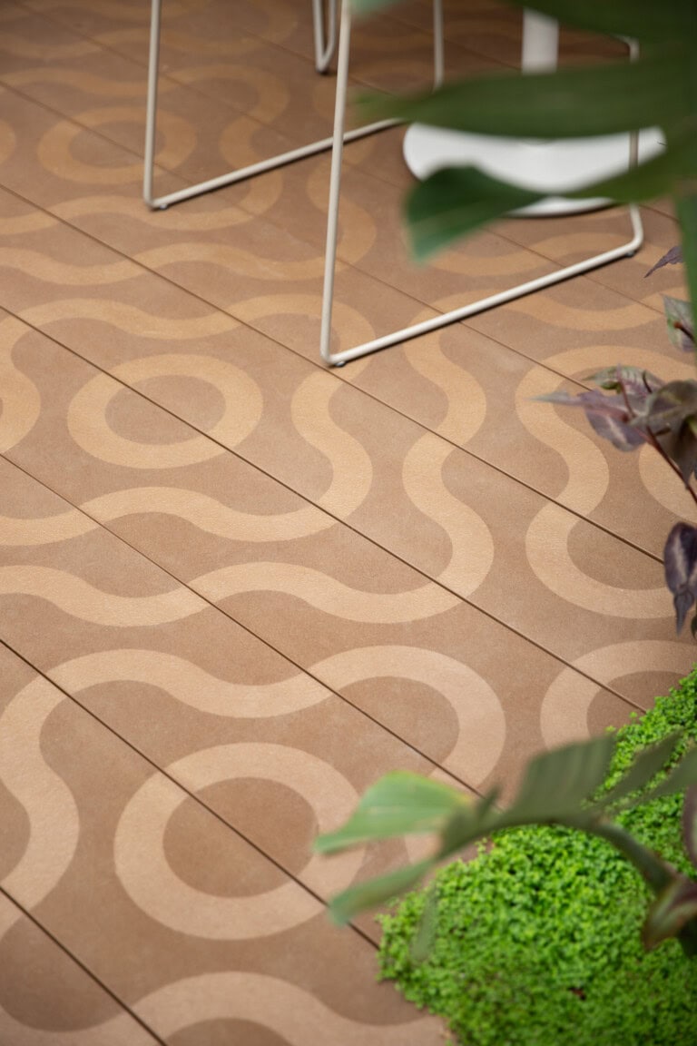 Millboard Oberflächen in Farbtönen wie Coppered Oak, Burnt Cedar oder Driftwood fügen sich nahtlos in diese Paletten ein. Sie unterstützen Gestalter dabei, Räume zu schaffen, die geerdet wirken und gleichzeitig Tiefe und Wärme ausstrahlen.