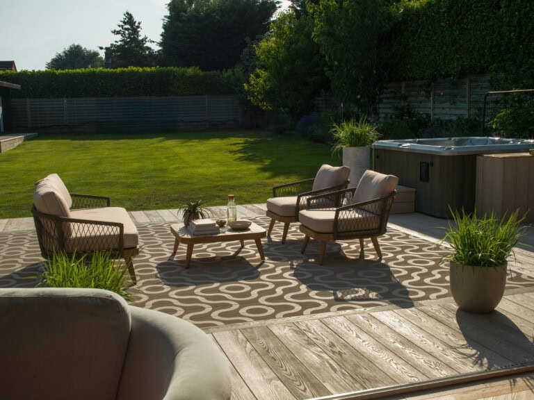 The enhanced slip resistance made the deck ideal for year-round use – from summer evenings in the hot tub to crisp autumn evenings under festoon lights. Even after rain, the boards remain highly slip resistant.