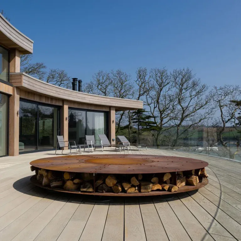 Quay House is a bespoke luxury waterside residence, designed by Lillie Lewarne Architects and built by P Chapman Construction. Packed with special features, the property is situated in a commanding position, at the head of sharp curve in the River Percuil. The build took place in a clearing of densely wooded banks that descend steeply to a ledge nestled into the hard rock of the hill. This ledge leads to a granite quay, overlooking the water.