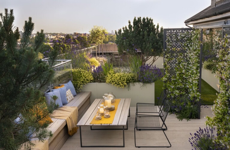 With today’s weatherproof fabrics and furniture designed to withstand the British climate, your deck becomes a lounge, a reading nook, or a pop-up cinema, limited only by your imagination.