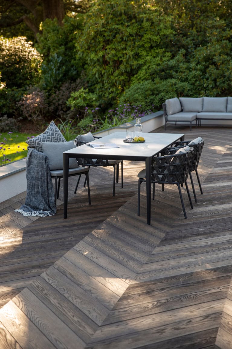 Modello is a design led decking range that introduces geometric patterns using linear or curved boards. It allows architects and designers to create statement surfaces while retaining all the performance benefits of Millboard decking.
