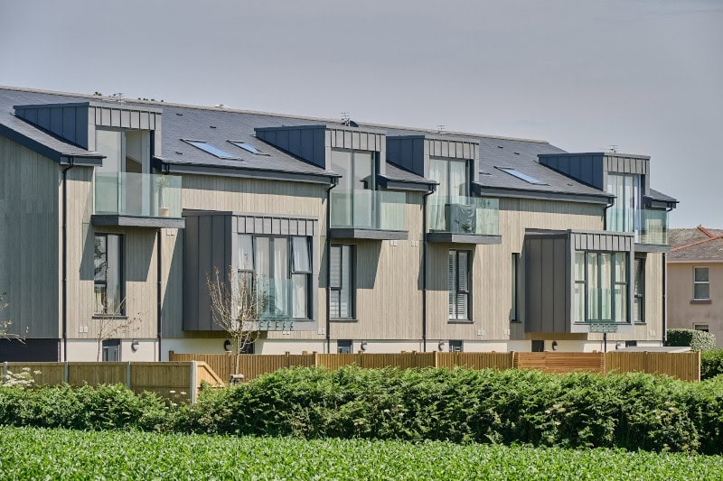 The clean lines of stained painted timber cladding, with none of the drawbacks of maintaining natural wood.