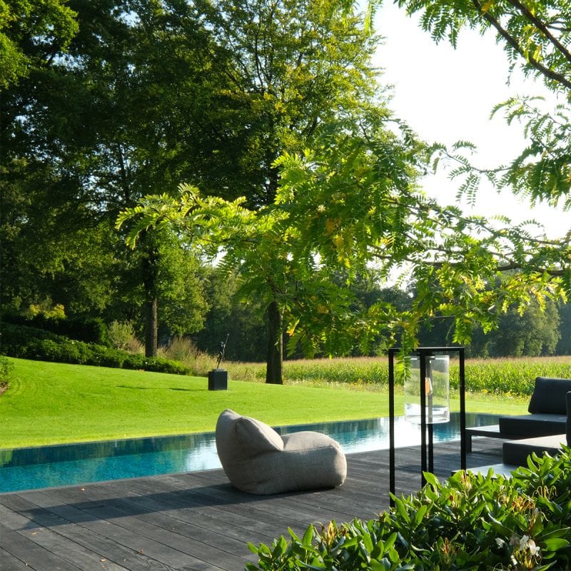 Les terrasses en composite offrent des options de design polyvalentes. Millboard fabrique des lames de terrasse à l’aspect bois naturel dans trois styles différents. Enhanced Grain est moulé à partir de lames de chêne pour obtenir le motif de grain de bois le plus authentique possible. Choisissez parmi dix teintes et deux largeurs de lames. Configurez vos lames de terrasse comme vous le souhaitez, par exemple en forme de mosaïque, de chevrons ou de chevrons.