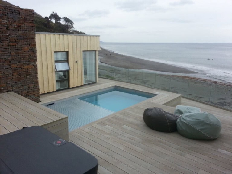 Les espaces extérieurs intégrant de l’eau présentent des contraintes spécifiques. Plages de piscine, terrasses de spas ou de jacuzzis, douches de jardin et espaces bien-être ne sont pas seulement exposés aux éléments, mais aussi à une humidité constante, à un fort passage et à des produits agressifs comme le chlore. Ajoutez à cela le climat britannique – du soleil estival au gel hivernal – et il devient évident que le bois traditionnel peut rapidement montrer ses faiblesses.