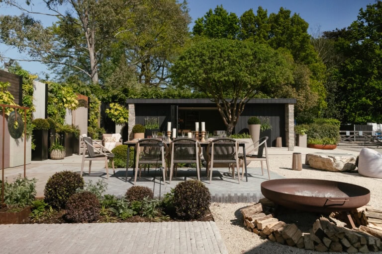 En pénétrant dans la garden room du Glasshouse Collective, on découvre comment les produits Millboard prennent vie dans des mises en situation réelles. La structure dégage une élégance discrète — un espace où les frontières entre la maison et le jardin s’effacent. Chaque détail respire la qualité. Chaque matériau raconte une histoire.