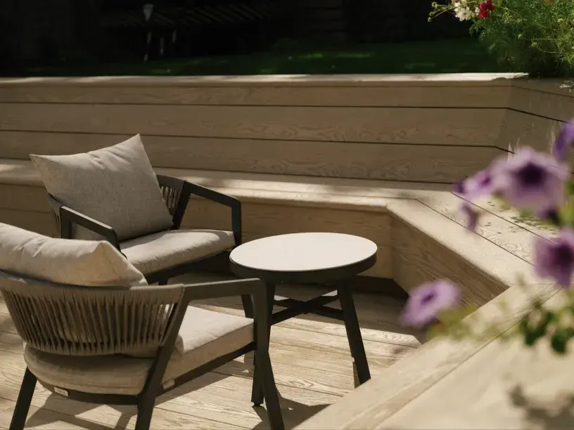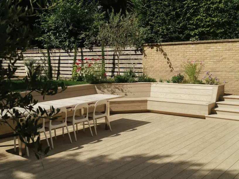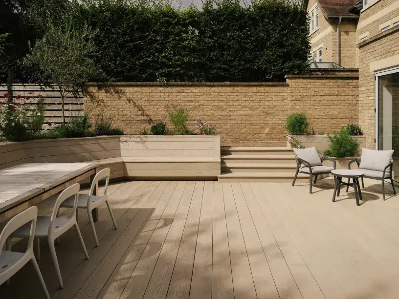 “Millboard decking ticked every box,” she says. “It was perfect because we could clad it directly over the existing porcelain tiles without needing to remove them. That saved time, reduced disruption, and kept the project within scope.”