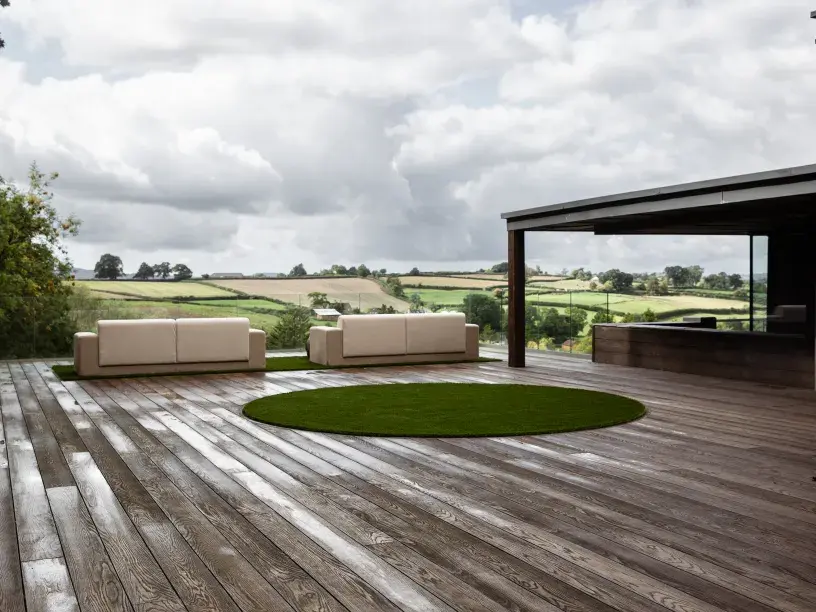 Upstairs, a newly added terrace offers another layer to outdoor living, a peaceful spot for morning coffee or an evening glass of wine. With Millboard decking underfoot and views stretching across the Somerset countryside, it’s become a favourite place to pause and unwind.