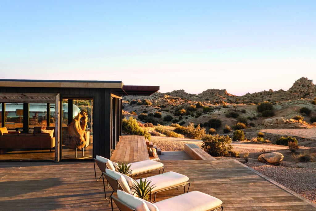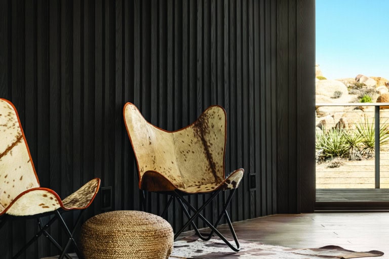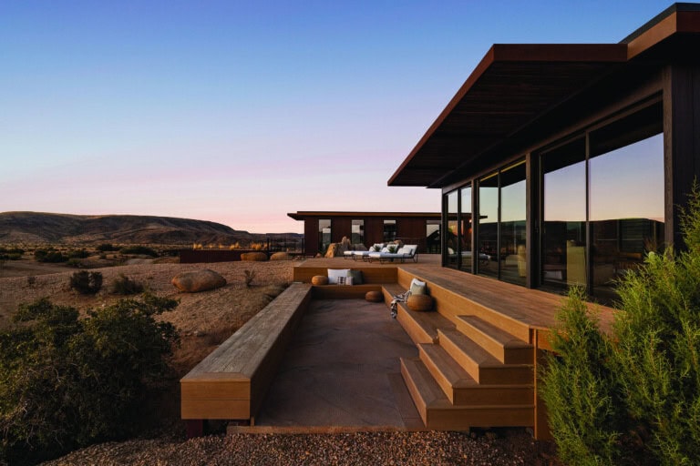 From room to room, Millboard decking and cladding complements the raw beauty of the Joshua Tree landscape, offering a natural aesthetic.